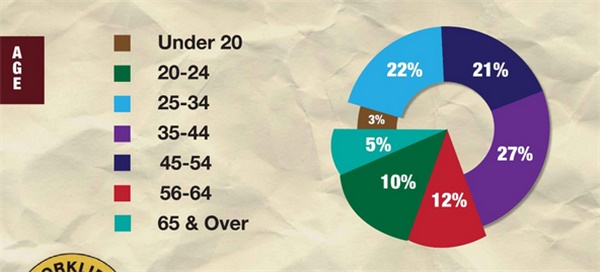 從這個(gè)餅狀圖可以看出所占比例最少的是年齡低于20歲的工人,20-24歲的工人比例為22%,25-34歲的工人比例為21%。其中 所占比例最高的為35-44歲的工人,他們所占的比例為27%。44歲以后的高齡工人所占整個(gè)比例為25%。從整個(gè)餅狀圖的分布來看,行業(yè)中工作的人群主 要分布在青年和中年之中。值得一提的是其中65歲以后的工人與20歲以下的工人在其中所占比例最少,可想而知在那些老齡化密集的城市中對(duì)于年輕化的工人是 多么的需求,如果他們要改變這個(gè)現(xiàn)狀則只能大量采購自動(dòng)化設(shè)備。