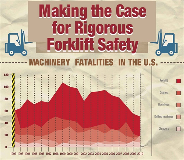 在美國每年會(huì)發(fā)生很多工業(yè)方面的事故,其中有1/6的事故來自于叉車事件約計(jì)有110,000件,所造成的直接經(jīng)濟(jì)成本損失高達(dá)135,000,000美元。然而,叉車司機(jī)在其工作生涯中所面對(duì)的叉車事故不僅僅只會(huì)發(fā)生一次并且其中至少有80%的叉車事故都涉及到行人。